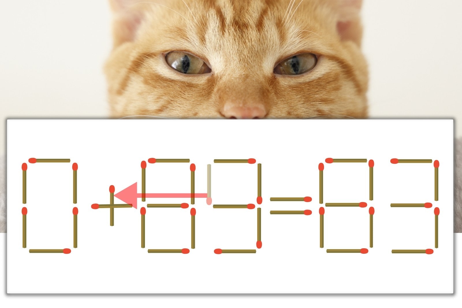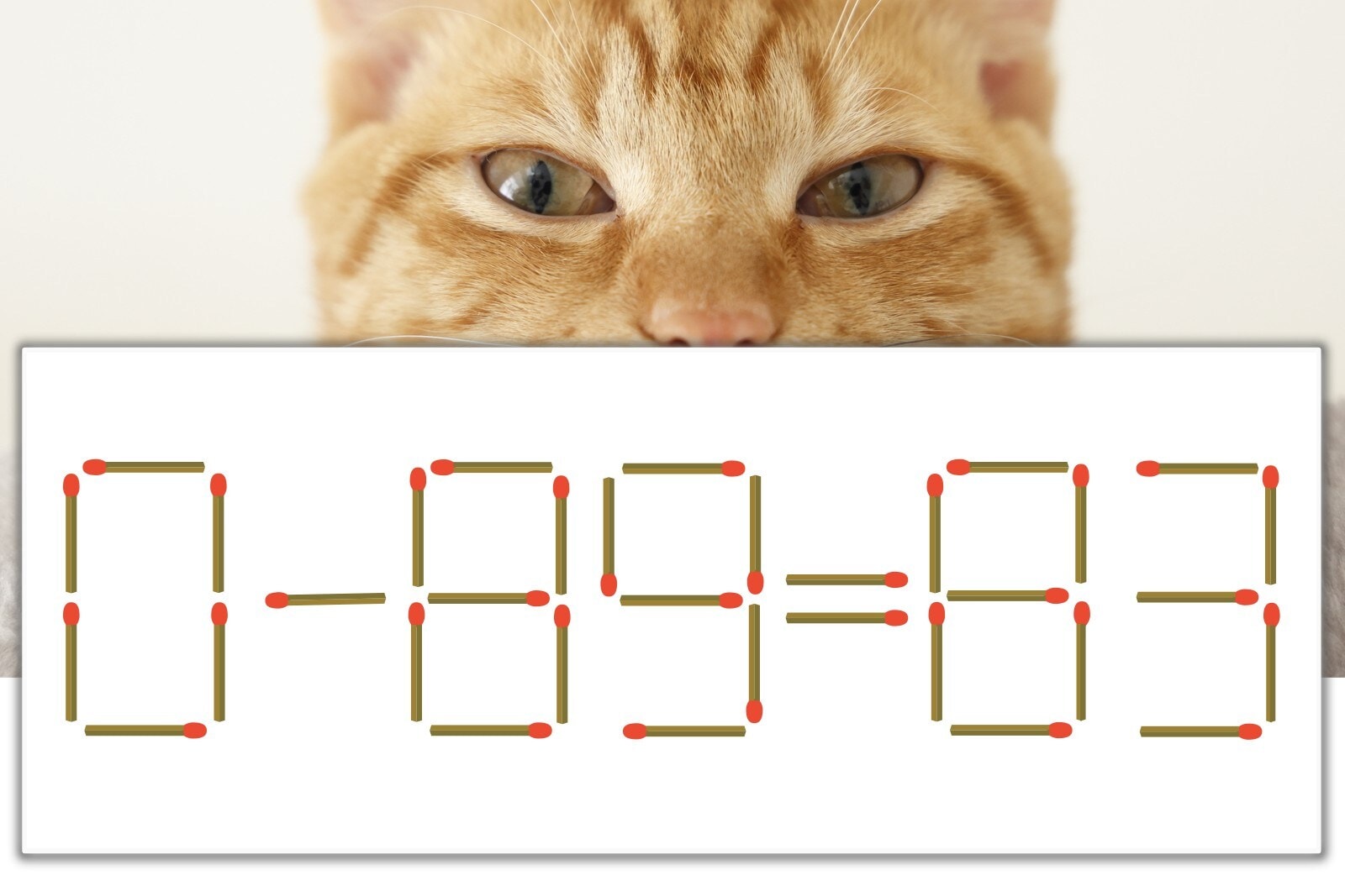 「9」を別の数字に変化させると答えが導き出せます。「9」のマッチ棒を1本移動して、「-」を「+」にしてみましょう。すると、「0+83=83」が成立します。