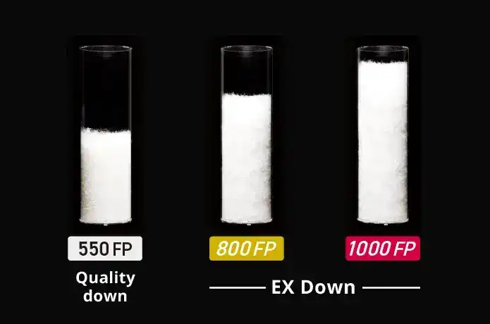 なお、ダウンの品質を示す指標として「フィルパワー(FP)」があり、数値が高いほど羽毛のかさ高性が高く、効率よく暖かさを確保できます。一般的に700フィルパワー以上であれば、軽量ながら高い保温性が期待できます。