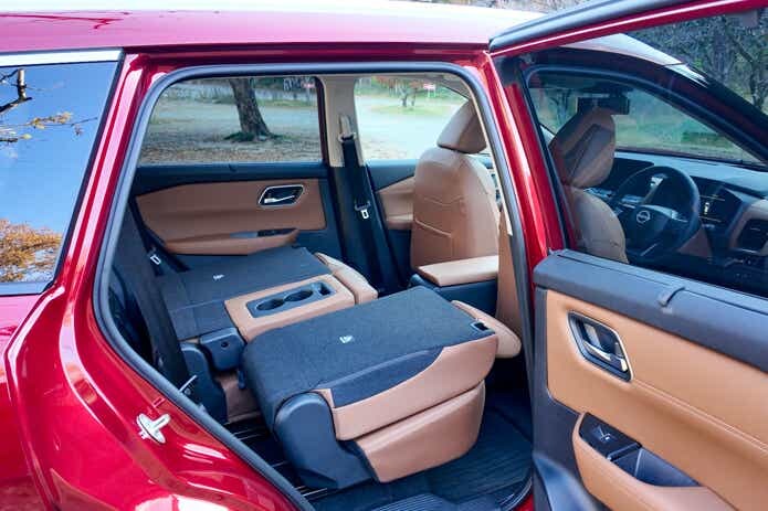 エクストレイルの室内寸法は、室内長1,990mm × 幅1,540mm × 高さ1,215mm(今回の試乗車のグレード、装備において。他のグレード、装備では若干数値が異なる)。こちらも、広々としたサイズです。