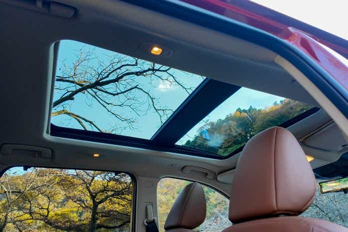 車中泊するのに必要な空間は確保されていますが、後席空間を埋める一工夫が必要なことと、オプションのパノラミックガラスルーフを選択すれば、開放感ある車中泊ライフが送れるということで”条件付き”としました。