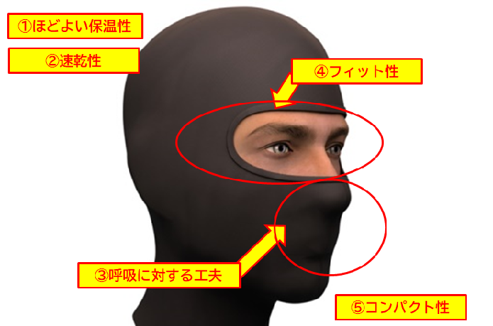 でも、バラクラバと一言で言っても、様々な種類があります。登山向きのバラクラバはもちろん、スキー・スノボ向き、サバゲーなどの屋外活動向けなど。では、”登山向き”のバラクラバを選ぶためのポイントは何でしょうか?