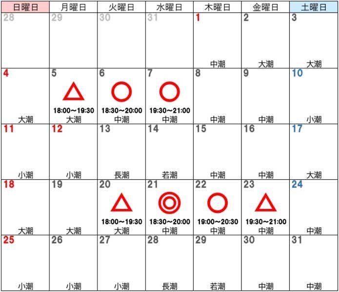 ここ数年の兆候としては、大潮後の中潮が、一番バチが抜けやすく魚が釣りやすいとされる日。