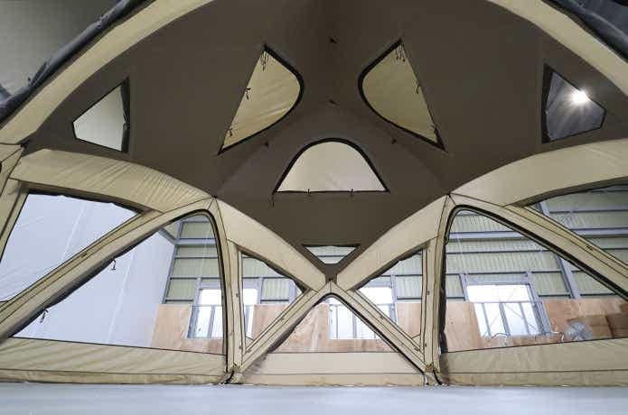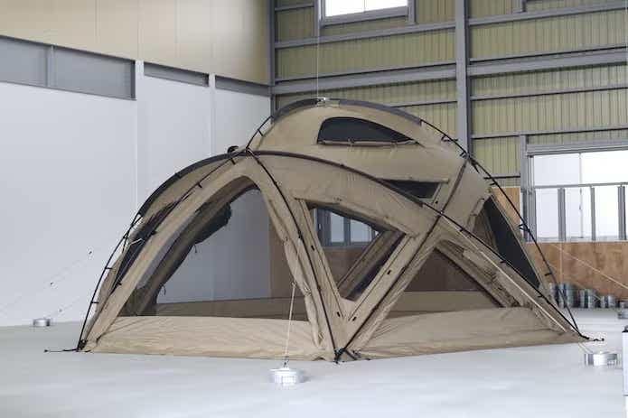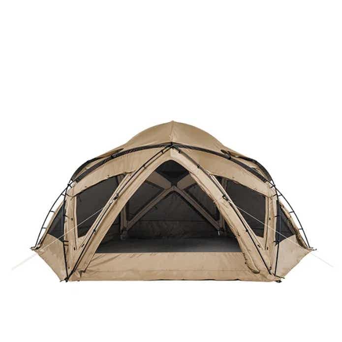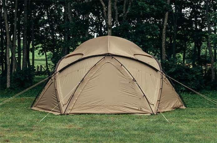 まず特筆したいのが、ドーム構造による高い耐風性。大型テントにも関わらず、できる限り少ないフレームで高い耐風性や強度を実現しています。
