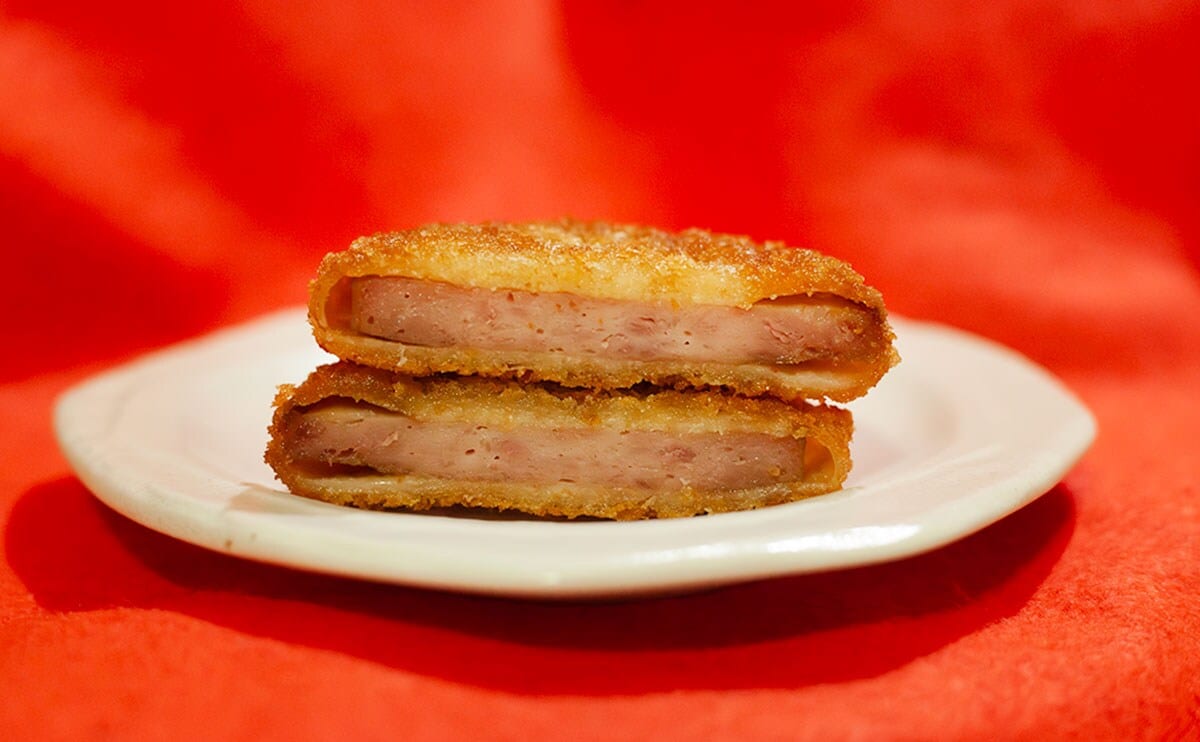 ハムカツについて説明するのも変な感じがしますが、豚肉が主体のハムにサクサクの衣を付けたものだそうです。“主体”という言葉に何か含みを感じますね。