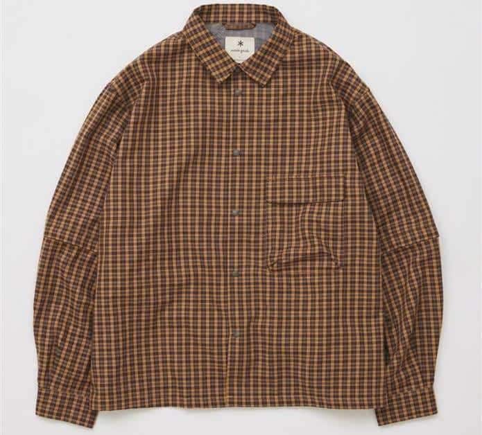 クロップド丈のワイド&ショートシルエットを採用し、チェック柄も小柄に再編集することで、アウトドアシャツにありがちな野暮ったさを抑えています。
