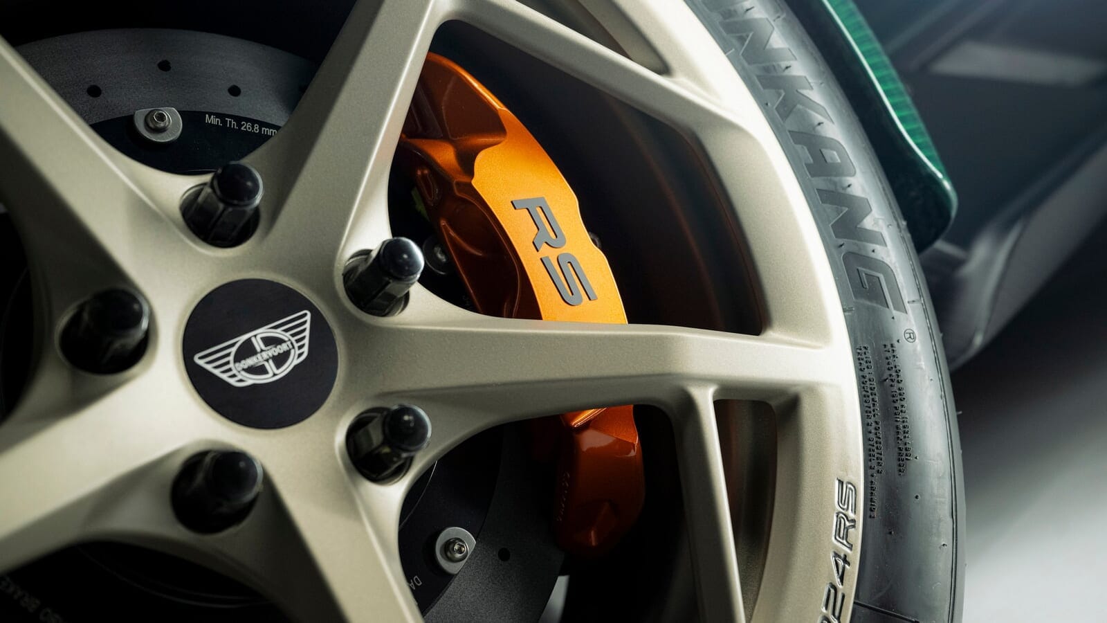 ドンカーブートでサーキットに行くって? 片側2.1kgの軽量化になるカーボン・セラミック・ブレーキもオプションで用意されている。また、P24 RSには取り外し可能なエアロキットも付属しており、冷却性能を高めたり、むき出しの前輪周りやフロア下の空気をダブル・ディフューザーへと流したりできる。その結果、巨大なアゴを持つクルマになるが、最高速度に影響を与えることなく、250km/h走行時に90kgのダウンフォースを追加できるのだ。