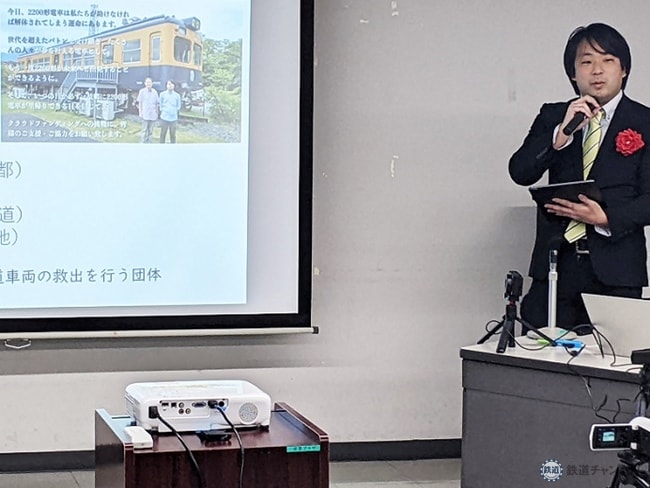 続く講演会では、CARB(カーブ)、沖縄県与那原町立軽便与那原駅舎展示資料館、JR貨物の3者代表が鉄サマ参加校に活動を披露。一般社団法人・CARB(Capital Area Railway Base)の今井美槻代表理事は、クラウドファンディングの資金で、首都圏での引退した車両保全に取り組む思いを語りかけた。