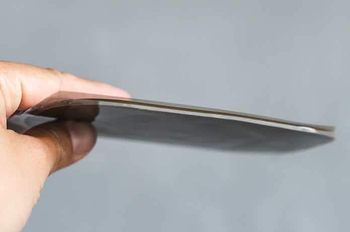 こ〜んな感じで柔軟で粘着力があり、何度でも貼り付けたり剥がしたりできます。これを使えば、滑りやすいテーブルでも物がピタッと貼り付いたように安定します。