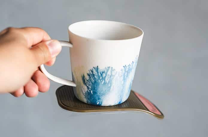 表面のフィルムだけ剥がして、マグカップを置き、そのまま浮かせてみると……