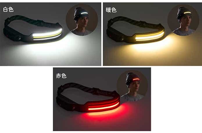 「野電 ノンタッチヘッドバンドライト・USB」は、シリコン製の薄型ボディを採用したモデル。
