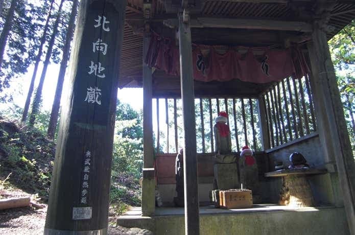 五常の滝の少し先から登山道が始まります。登山道はよく整備されていて、歩きやすいですよ。しばらく歩くと出てくる「北向地蔵」の分岐から物見山方面へと進みましょう。