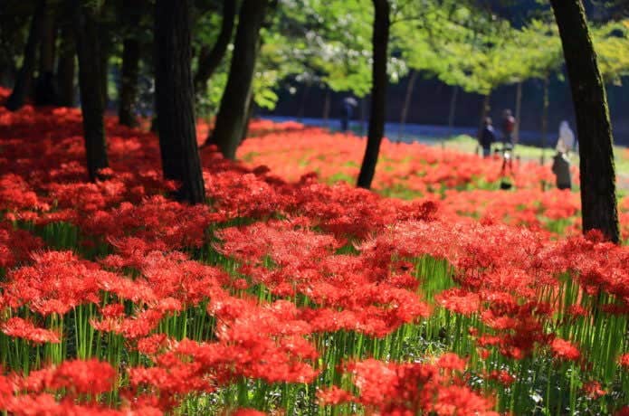 春は黄色、秋は赤に彩られる「巾着田」