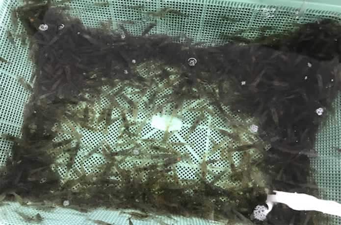 関西の釣具店では良く販売されている生きたエビです。オキアミと異なり活き餌なので、動きのアピールが加わります。