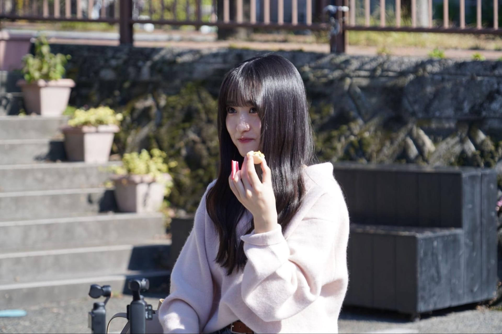 正午。“霧島温泉市場”に到着した2人。足湯や瀬戸口おすすめの“蒸しもの販売所”から煙が立ちのぼる。蒸しもの販売所は、霧島温泉の蒸気で蒸しあげた卵や野菜が人気。一ノ瀬は「さつまいももあるよ!」と言って嬉しそう。瀬戸口のおすすめは温泉たまご。温泉たまご、温泉まんじゅう、揚げもち、さつまいもを注文する一ノ瀬。買った蒸しものは青空の下でいただく。一ノ瀬は温泉たまごの熱さにおどろいた様子だ。「寒い時に食べるのが最高なんです」と、瀬戸口。2人はあつあつの温泉たまごを黙々と食べる。一ノ瀬は「あと3つくらいいける」と言う。かじりついた卵をこぼしてしまった瀬戸口。一ノ瀬が「心月ちゃんってさ、意外とこぼしがちだよね」とツッコむ。瀬戸口は衣装を着るようになってから“こぼし癖”は減ったと話す。瀬戸口が家族とよく来ていた場所で、心の距離を少しずつ縮めていく2人だった。