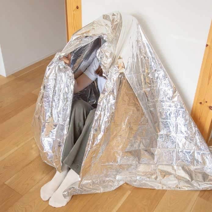 エマージェンシーシートは、体に巻いたりかけたりすることで体温の低下を防ぐための簡易的な防寒アイテム。もともとは登山やアウトドアの非常用装備として使われてきましたが、近年では防災意識の高まりから、家庭の防災用品としても広く取り入れられるようになっています。