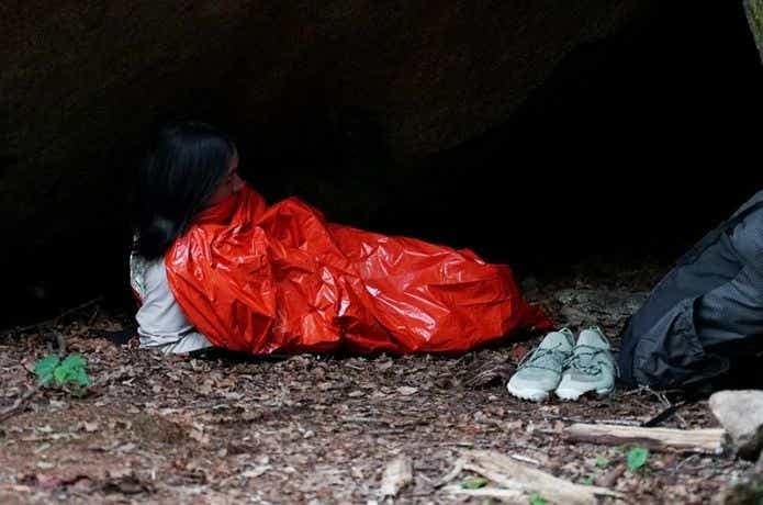 防風・防水性が高く、雨や冷たい風にさらされる状況でも、体を包み込むことで保温状態を保ちやすい構造。ブランケットのように巻き直す必要がなく、横になったまま使える点も非常時向きです。