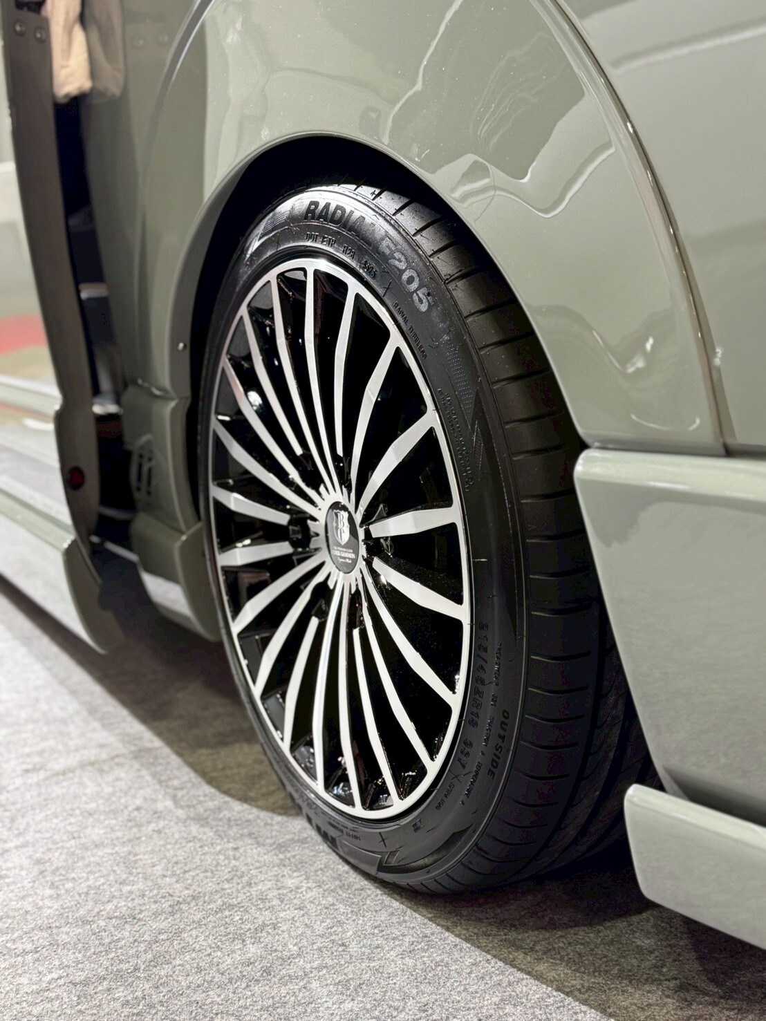 これまでは20インチの鍛造品のみのラインナップだった。鍛造20インチは、ハイエースの足元を一気に「低く・太く・デカく」見せる逸品。鍛造は圧力で鍛えて成形するため、20インチと大きなホイールであっても強度を確保しつつ軽く作れるのだ。ローダウンするなどしっかりと車両全体のスタイルをカッチリとまとめ上げれば、ショーカーのようなラグジュアリーな世界観を構築できる。