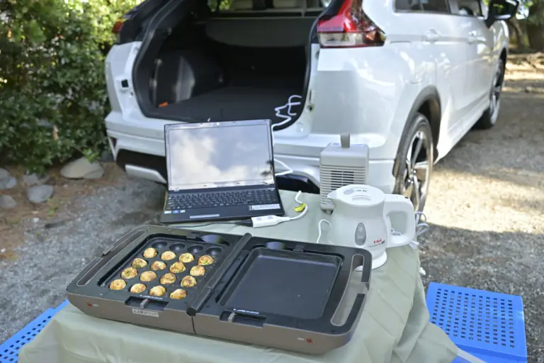 そしてもう一つの特徴はPHEVならではの特徴でもある大きなバッテリーの搭載により、電化製品などを使える電力を取り出すことができるというところ。これにより、キャンプ場に着いたらすぐに電化製品を使ったキャンプを楽しむことができるのだ。