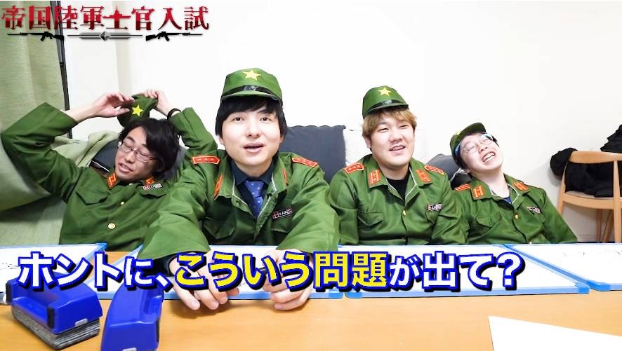 1月24日、「【東大院卒vs明治時代の最難入試】大日本帝国軍将校になるための試験を受けてみたら、色んな意味で厳しすぎた件について…」を公開。動画には、積分サークルのすん、ゆうゆう、キムに加え、でんがん、そしてゲストのヨビノリたくみが登場。1906年(明治39年)にタイムスリップしたという設定で、すんが教官役となり、大日本帝国軍の将校になるための試験問題に挑みます。