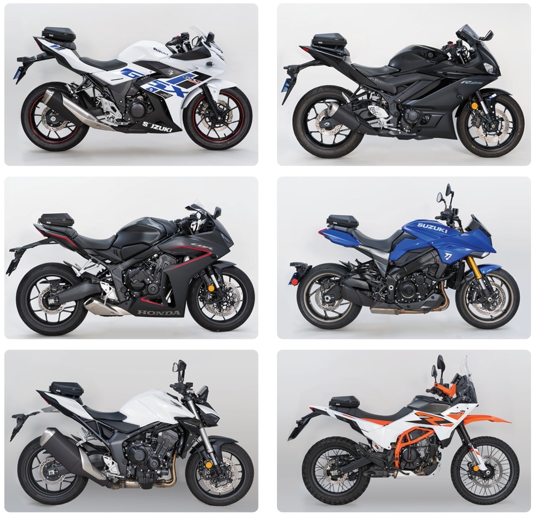 同ラインナップは、容量や形状の異なるS・M・Lサイズに加え、A4対応のボックス型「ツアーシェルシートバッグM」を展開。すべてに耐衝撃性に優れたポリカーボネイトシェルと高耐久ファスナーを採用し、ステッカー貼付可能なグロスブラックと、傷に強いエンボスブラックの2種を用意する。スマートな固定方式と防水インナーも全モデル共通で、機能とスタイルを求めるライダーに応える内容となっている。
