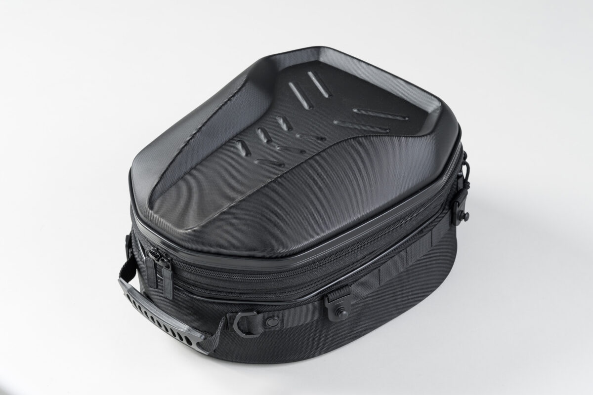 車両のカウルと馴染む質感のPCシェルが特徴的な、標準サイズのシートバッグ。シートバッグとしての機能と、PCシェル特有のルックスのバランスの良さが特徴の人気モデルを最新機能でリニューアル。