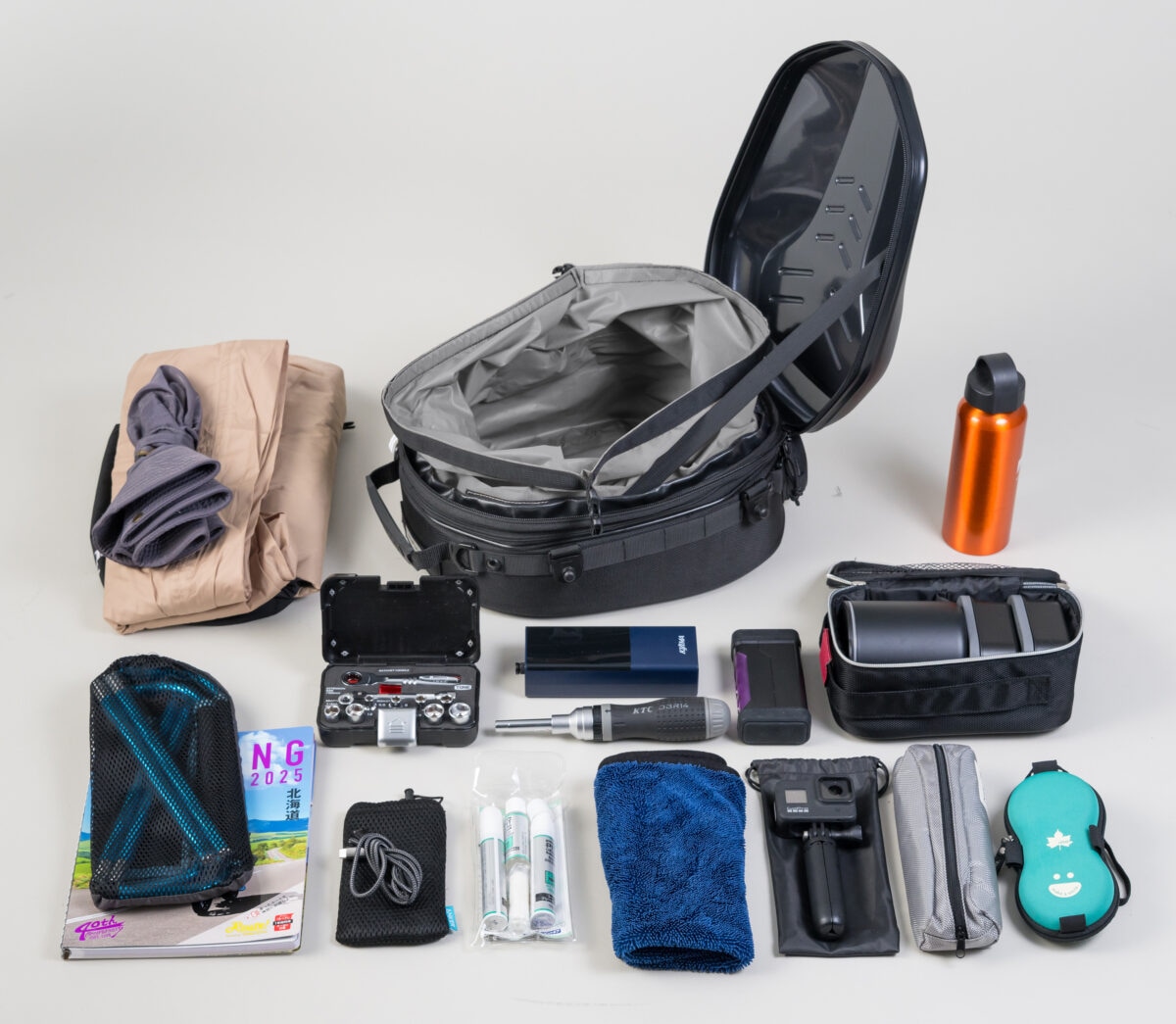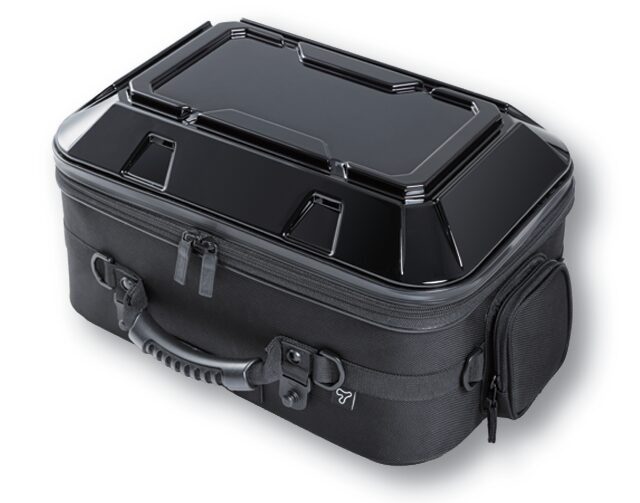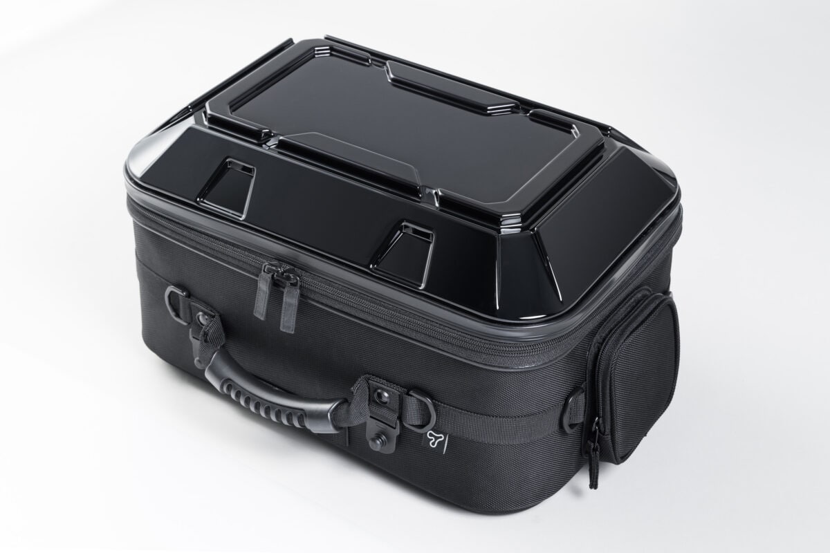 上面パネルをポリカーボネイト、下側を成形EVAの一体式とすることで、空荷でも型くずれせず、車両と一体感のある外観をキープ。堅牢なセミハードケースとして必要最低限の携行品をしっかり守ります。