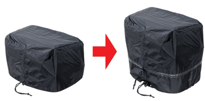 上部に積載した荷物も一緒にカバーできるよう、2段階の拡張可能なレインカバーを付属。