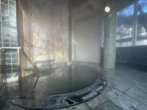 そんな濃い温泉に身を沈めると、湯にグッと強く包み込まれるアグレッシブな感覚が心地よく、日々の心身の疲れを絞り出して溶かしてくれるようでした。また、この季節の冷えた体を芯まで一気に温めてくれ、湯上がりもそのポカポカがずっと続いていました。それだけではなく、温泉成分が肌へグイグイ押し込まれたようで、もっちりとしたうるおい肌も実感できました。