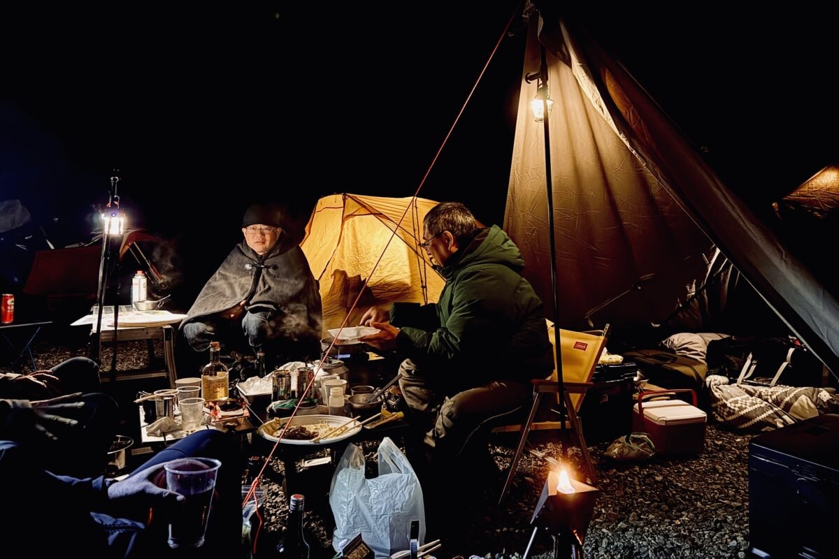 それでもせっかくきたのだから楽しまなければと、現地で出会った人とお話したり、テントの設営をしているうちに、あたりは次第に暗くなり、梅ヶ島の空はやがて、満天の星に埋め尽くされていった。夕餉を囲んで和やかに話すみんなの声を聞きながら、のんびりとした雰囲気にすこし体調も良くなってきた気がしていた。