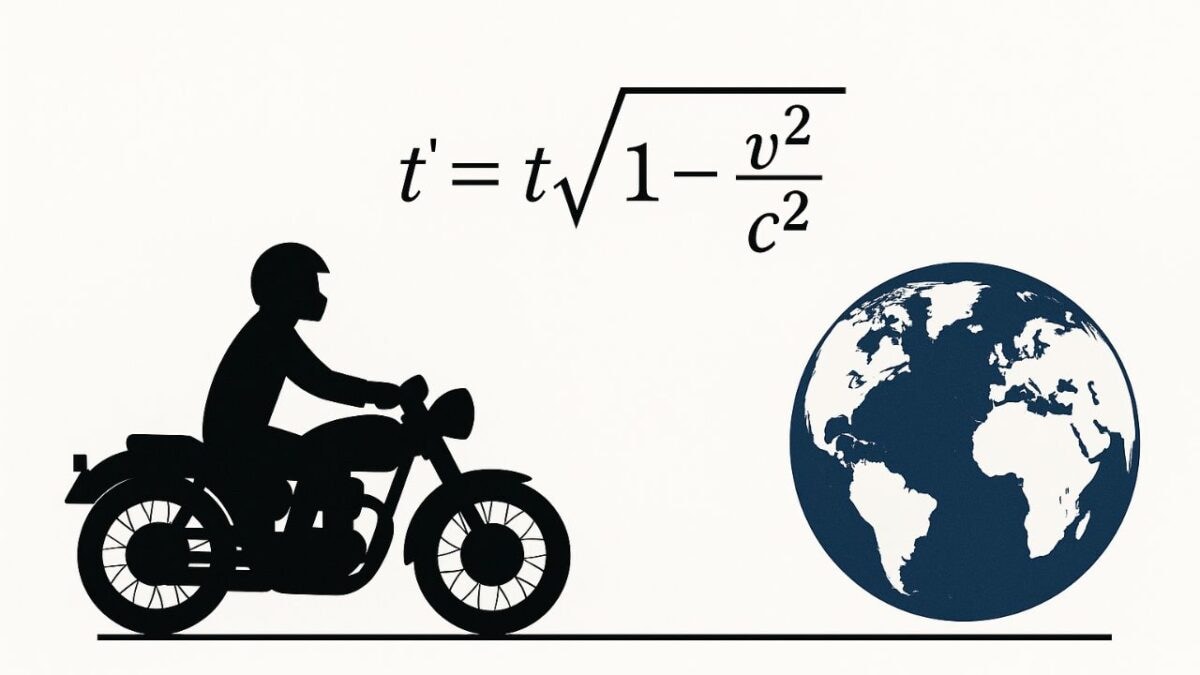 カソリおじさんの時間は、理論的には確かに、周囲よりゆっくり流れていると言える。ただその差は、計算すればピコ秒以下だ。50年以上バイクで走り続けても、アンチエイジング効果は、時間にしてしまえばほんの僅かの短い時間なのだ。むむ…閃いて即撃沈か…