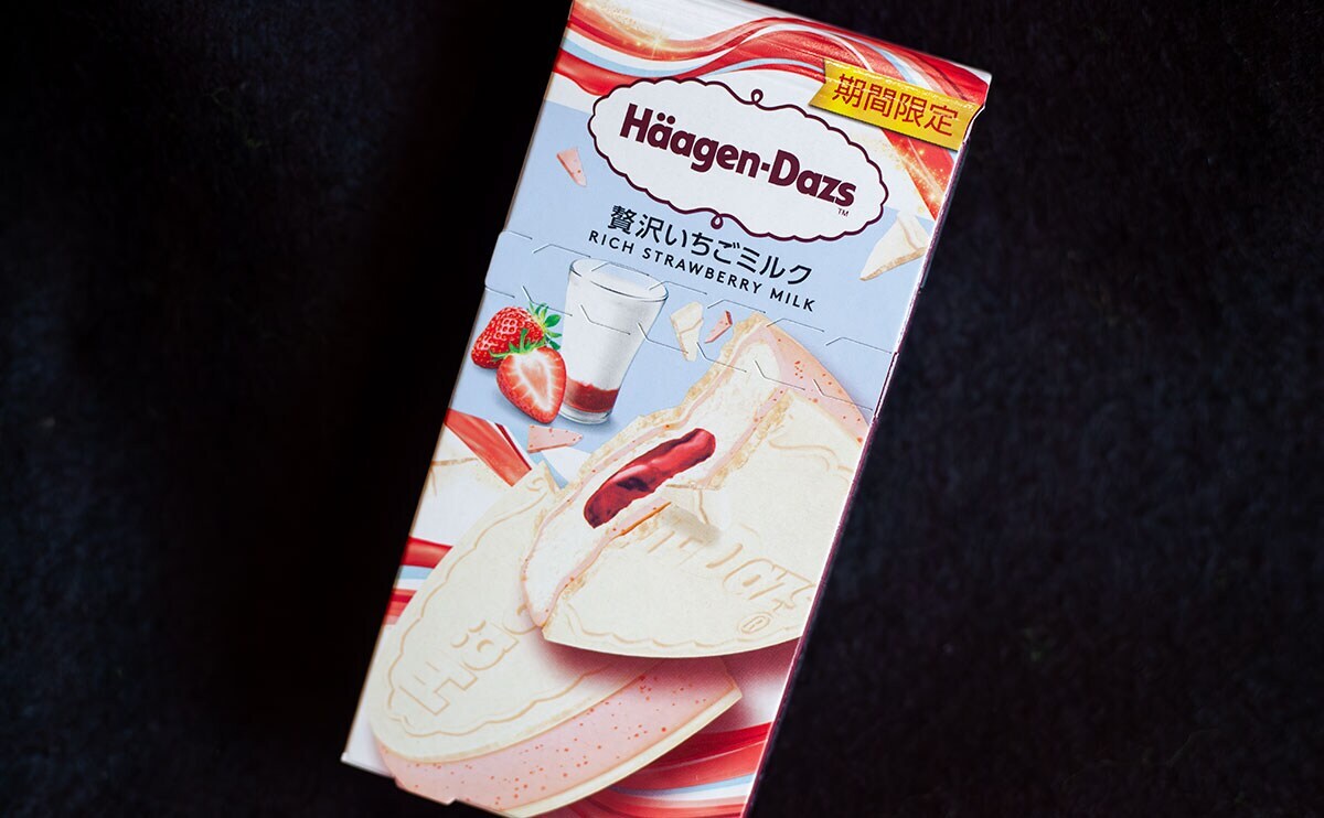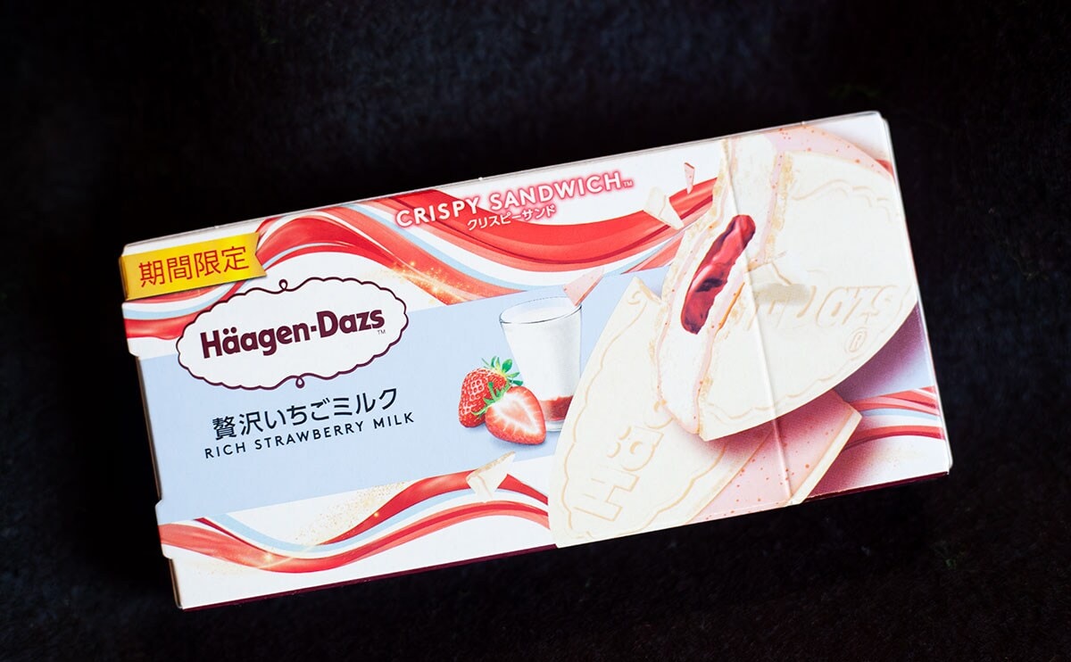 2026年1月20日(火)、ハーゲンダッツの人気シリーズ「クリスピーサンド」より発売されたのが、「贅沢いちごミルク」(税込351円)という新商品です。