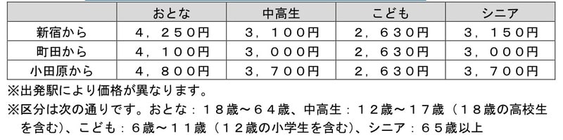 ・新宿発:大人4,250円