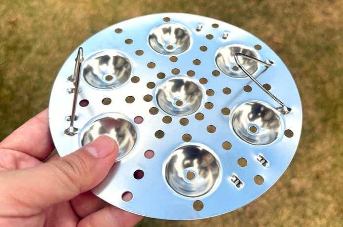 そして付属の「蒸し皿」には卵を置けるくぼみ付き。ゆで卵が簡単に作れる仕様なんです。もちろん温野菜や茶碗蒸しにも使えます。