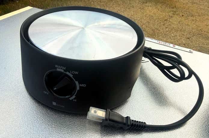 銀色の部分が全部ヒーターなのもいかにもパワーありげ。実際、小さめの家庭用IHコンロレベルで、1人暮らしならこれ1台で調理のすべてをカバーできそう。