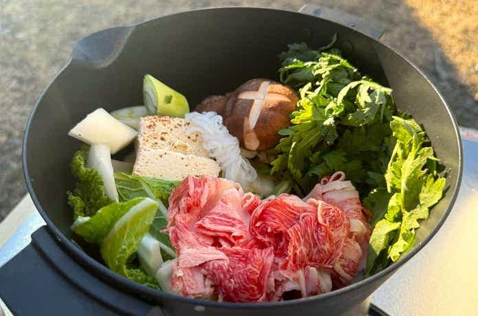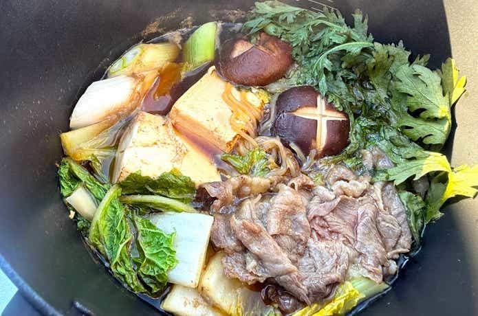 撮影時は年明け直後ということで、ここはすき焼き一択。深さがあると鍋の中のレイアウトも簡単! 吹きこぼれもまず心配なさそうです。では実際に調理してみますと……、