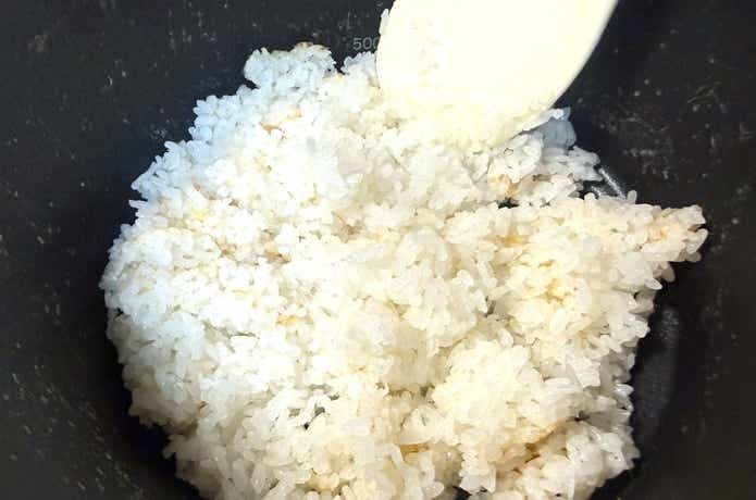 ついでに「炊飯」にもトライ。30分ほど米を浸水させれば、十分美味しく炊けました! 画像は1合を10分炊いて少し蒸らした状態。少しおこげができています。