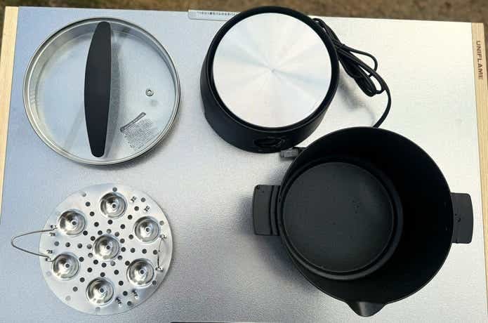 そこで見つけたのが、「1台10役マルチ調理ポット」。名前の通りこれ1台で10種もの調理ができるという、「お、キャンプに向いてそうじゃんオマエ」的なニオイがプンプンするギアです。