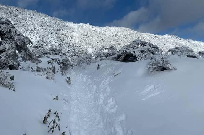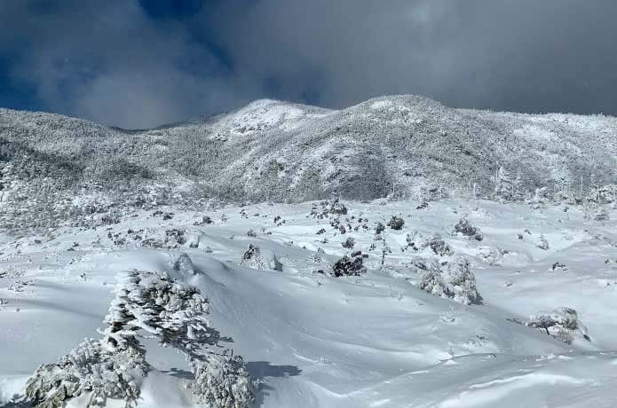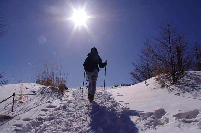たとえば雪山登山の入門とされる八ヶ岳エリアの北横岳は、通常軽アイゼンでも登山可能といわれています。2020年1月に訪れた際、筆者もそれに追従。