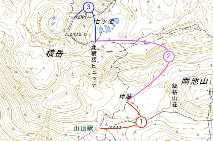 冒頭で紹介した通り、かつてアイゼン選びに失敗した経験のある北横岳。今回はチェーンスパイク・軽アイゼン・多本爪アイゼンすべてを持参して、それぞれの使用感を比較してみました。ルート概要は、以下の通りです。
