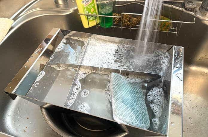 シンクの狭いキャンプ場では拭き取るだけにして、本格的な洗浄は自宅で行うなどの工夫もいりそうです。