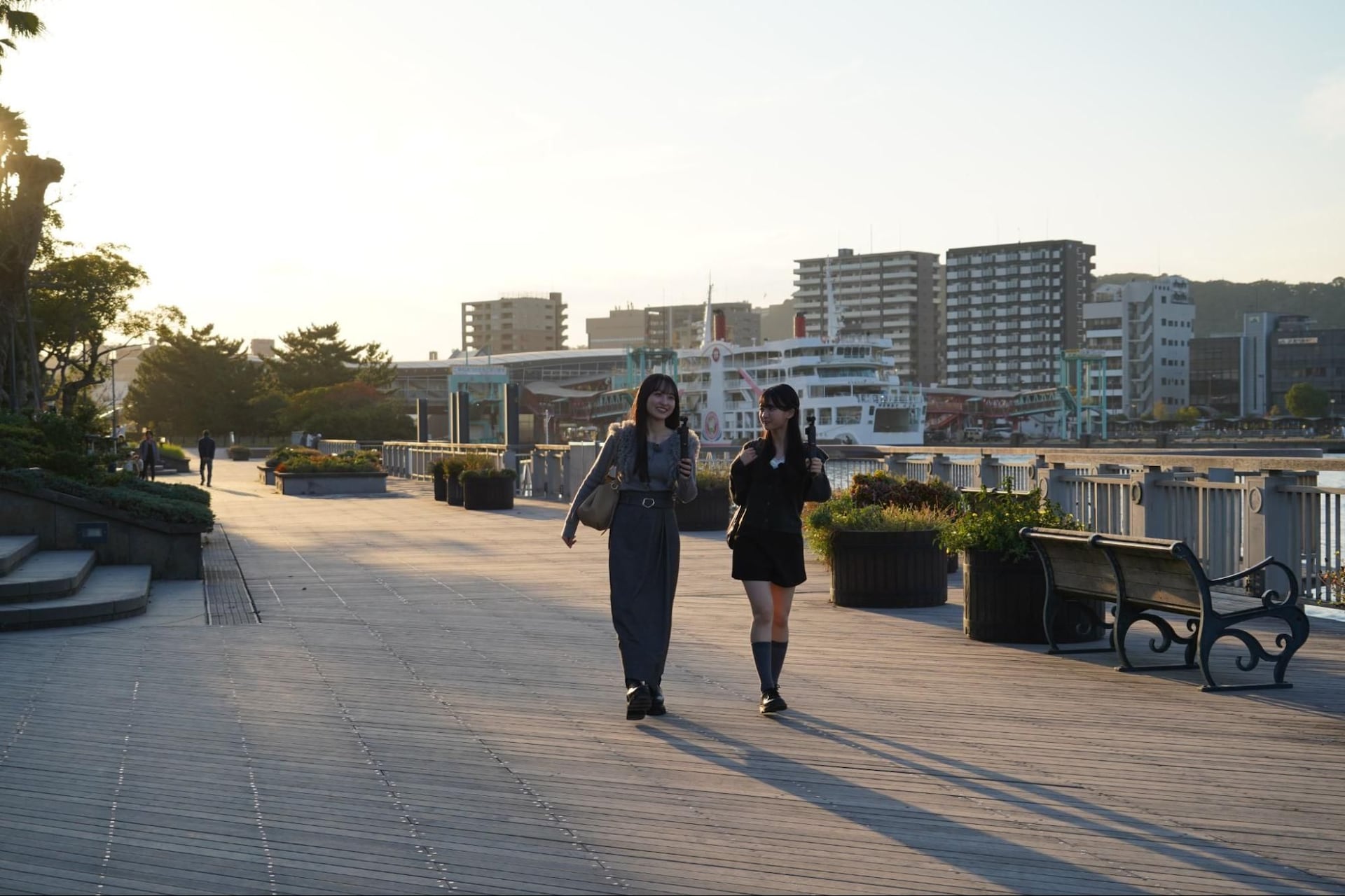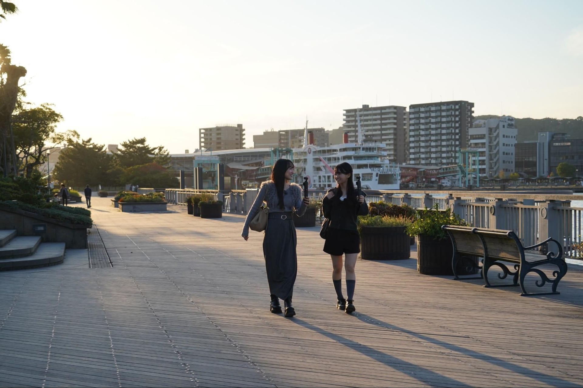 動物園で童心にかえってはしゃぎ、心の距離を縮めた5期生・一ノ瀬美空と6期生・瀬戸口心月。続いては、今でも瀬戸口が帰省したら立ち寄る“天文館”に向かう。