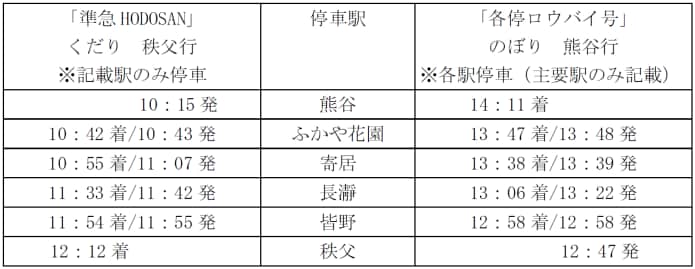 秩父鉄道の臨時列車運行について