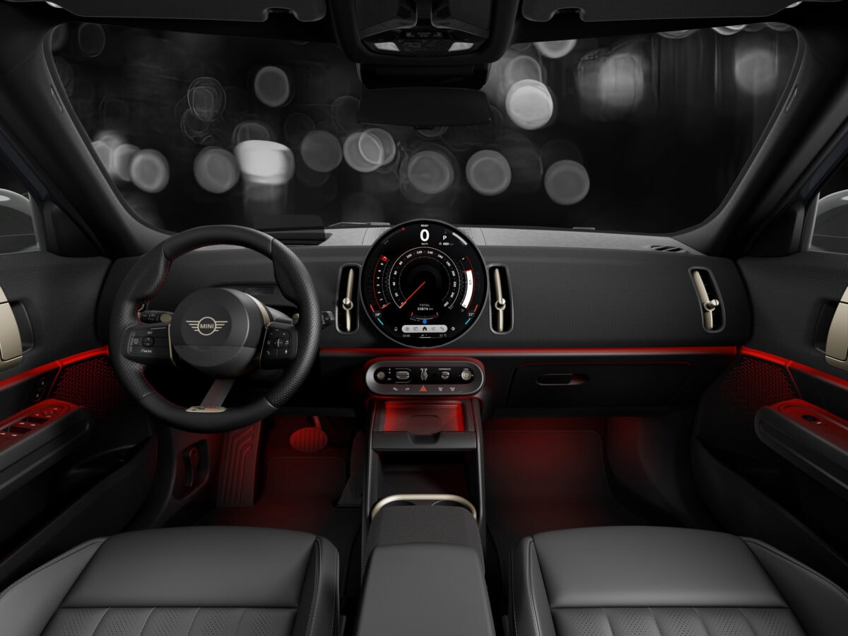 機能面では、ラインアップされている全てのMINI Countrymanと同様に、高速道路*1での渋滞時(時速60km以下)において、ドライバーが絶えず前方に注意するとともに、周囲の道路交通や車両の状況に応じて直ちにハンドルを確実に操作することができる状態にある限りにおいて、一定の条件下にて、ステアリングから手を離しての走行が可能*2となる「ドライバーの運転負荷を軽減し安全に寄与する運転支援システム『ハンズ・オフ機能付き渋滞運転支援機能』」を装備している。