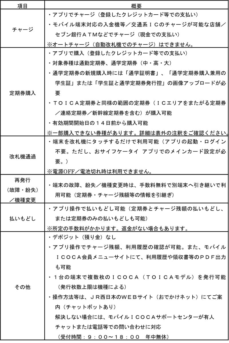 モバイルICOCAアプリを通じてサービスを提供