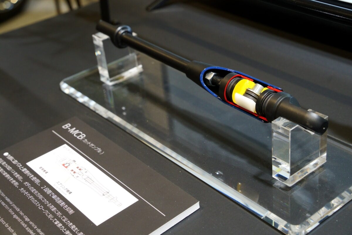 タワーバーなどの定番アイテムに加えて、ブリッツが注力しているのが「B-MCB」というボディアシストパーツである。これはアイシンが開発した「Motion Control Beam(モーションコントロールビーム)」の機構を採用し、内部のスプリングと摩擦機構が「荷重に対する反力」を発生させることで、ボディの横揺れや縦揺れを収束させる。