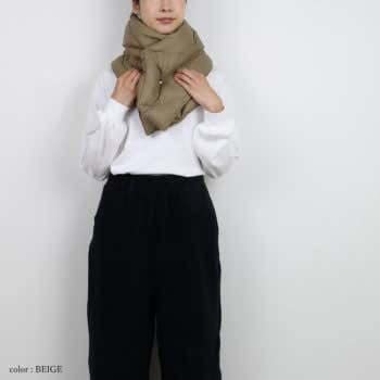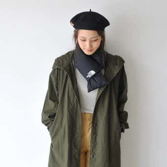 幅が広いダウンマフラーはインパクト抜群。暖かいだけでなく、コーディネートのアクセントになります。首元に巻くので小顔効果も期待できるかも。