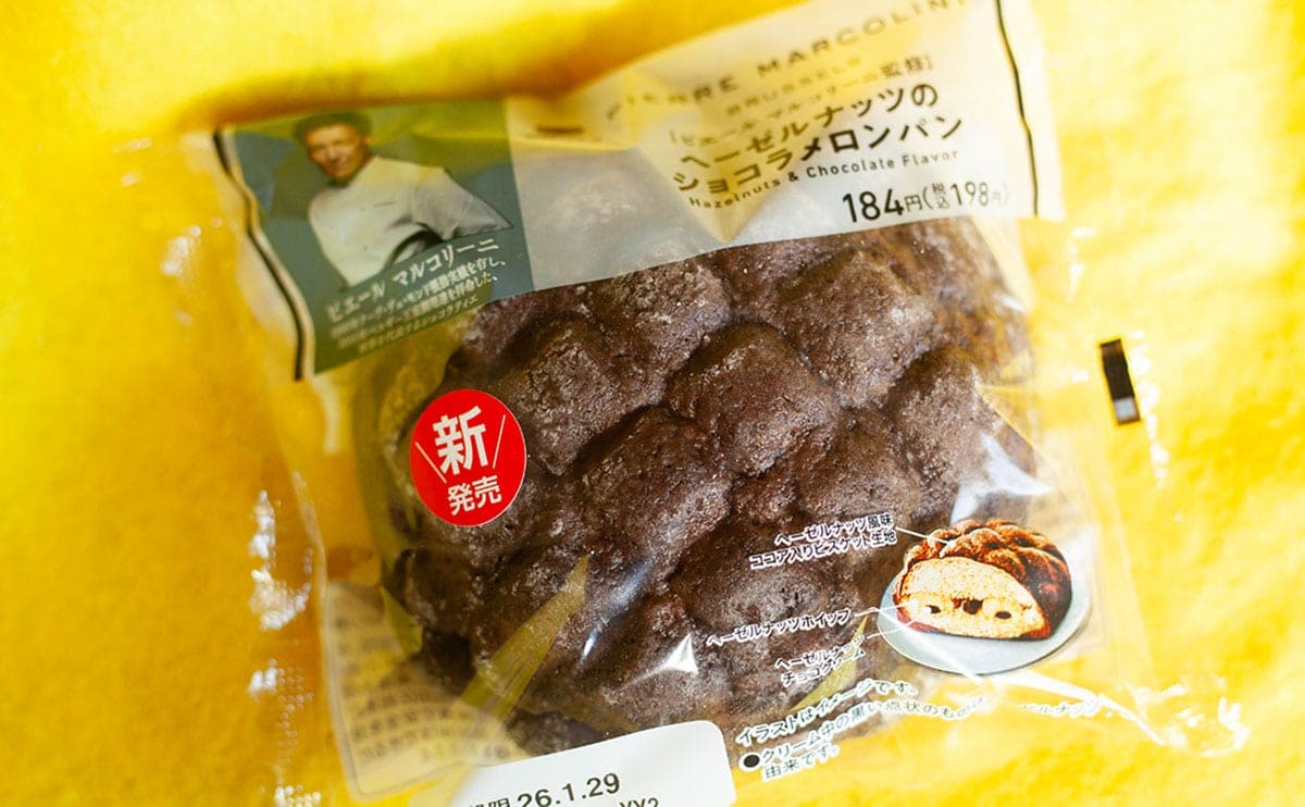 2026年1月27日(火)、ファミリーマートは、「ピエール マルコリーニ」が監修した新商品を発売。同コラボでは、全部で7品がラインナップされているのですが、その中から今回選んだのが、「ピエール マルコリーニ監修 ヘーゼルナッツのショコラメロンパン」(税込198円)です。