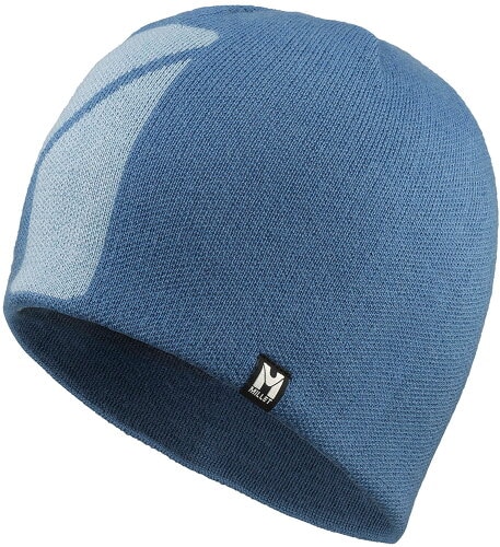 配色で大胆にあしらわれた大きなミレーのМマークが特徴的。ウールとアクリルの混紡で、保温性と速乾性を両立しています。