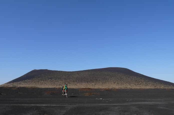 上写真は裏砂漠。軽石のようなものが溜まり、砕け、砂のようになって、独特の白い世界をつくっています。凹地になっているので、風は上空を通り抜けていきます。そのため、ほぼ無音です。足音さえも吸い込まれているよう。