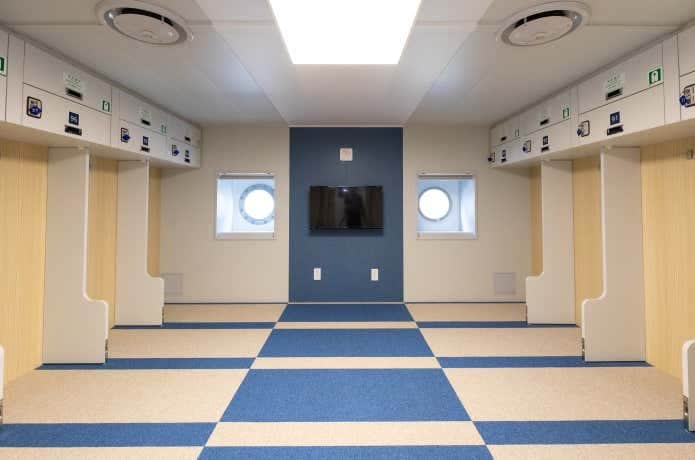 一方、冬は観光客が少なめ。運賃も夏より安くてお得。大型客船は、雑魚寝となる大部屋の2等和室も乗客が詰め込められることなく、比較的ゆっくりと就寝、船移動ができます。
